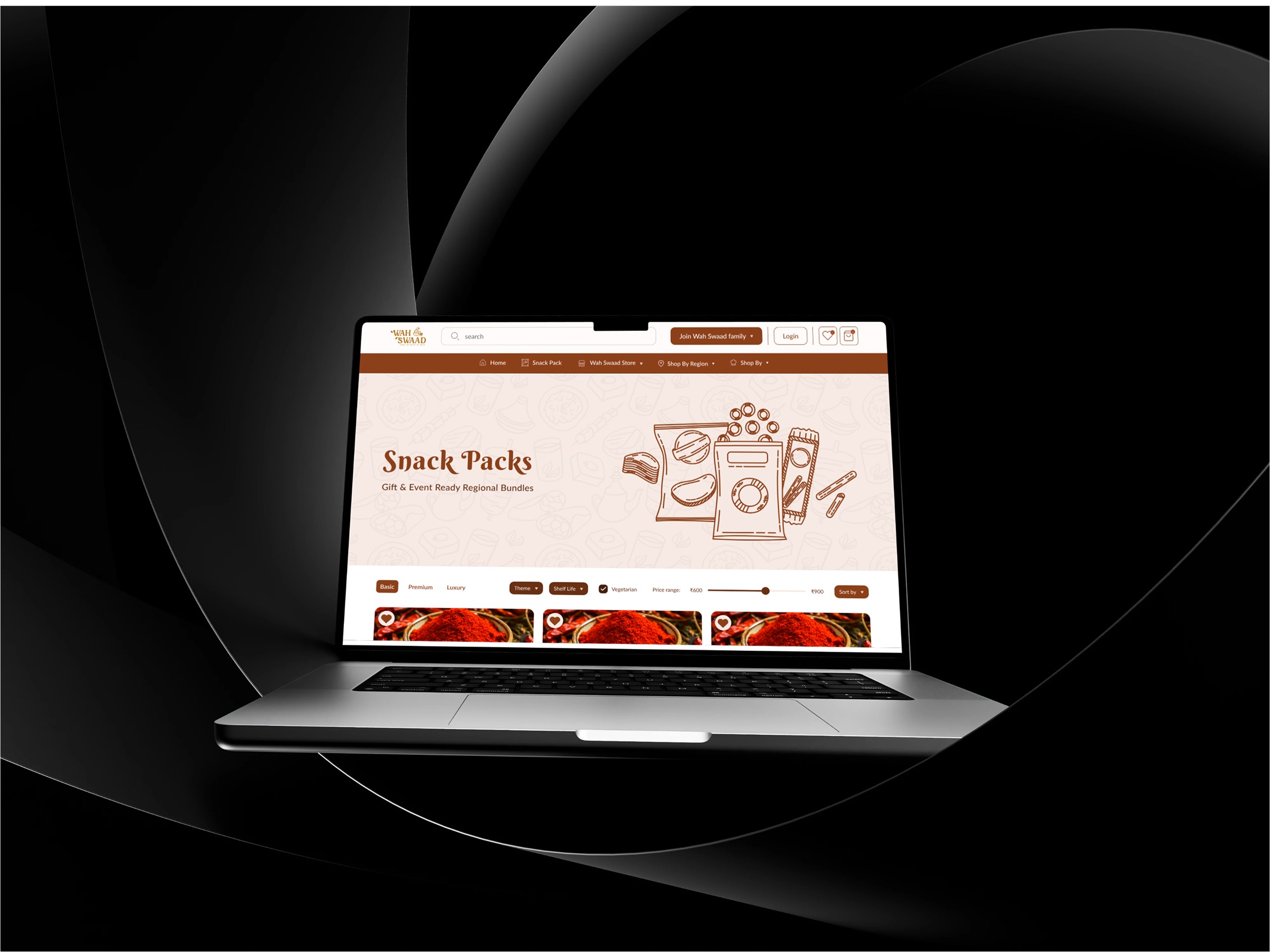The idea behind Wah Swaad was to revive the forgotten charm of homemade snacks — the ones made by our grandmothers during festivals or family gatherings. Through a warm, earthy design language and intuitive user flow, the website allows customers to not only purchase snacks but to experience the story behind each bite.